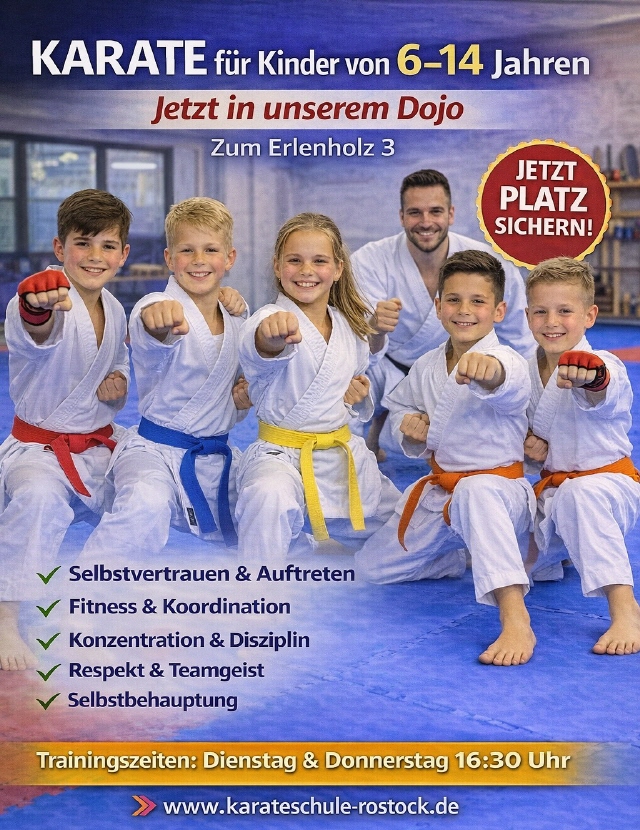 Wir laden Sie ein zu einer kostenlosen und unverbindlichen Probestunde in der ShoShin Karateschule Rostock. Kommen Sie zu uns und finden Sie heraus, was Kampfkunst bei uns so einzigartig macht. Sie brauchen am Anfang nur lockere Sportkleidung (T-Shirt und lange Trainingshose) und keine Schuhe. Bitte nutzen Sie das folgende Anmeldeformular und vereinbaren eine kostenlose Karate Probestunde für Ihr Kind.