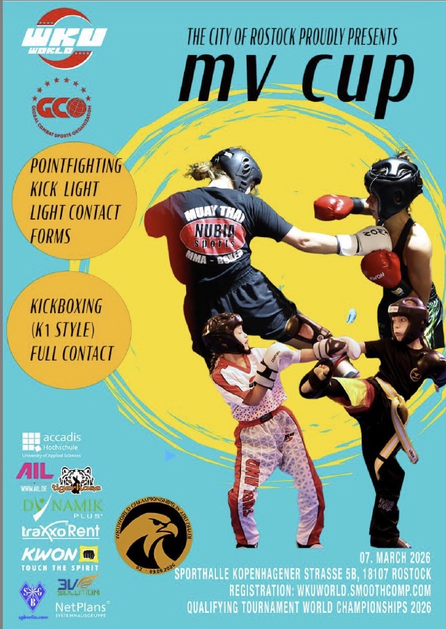 Für die Teilnahme an bestimmten Wertungsturnieren kann eine persönliche Mitgliedschaft in der World Karate and Kickboxing Union (WKU) erforderlich sein. Die entsprechenden Informationen und Unterlagen stellen wir bei Bedarf zur Verfügung.